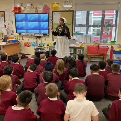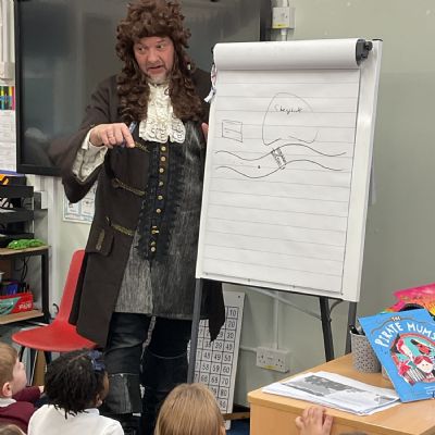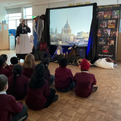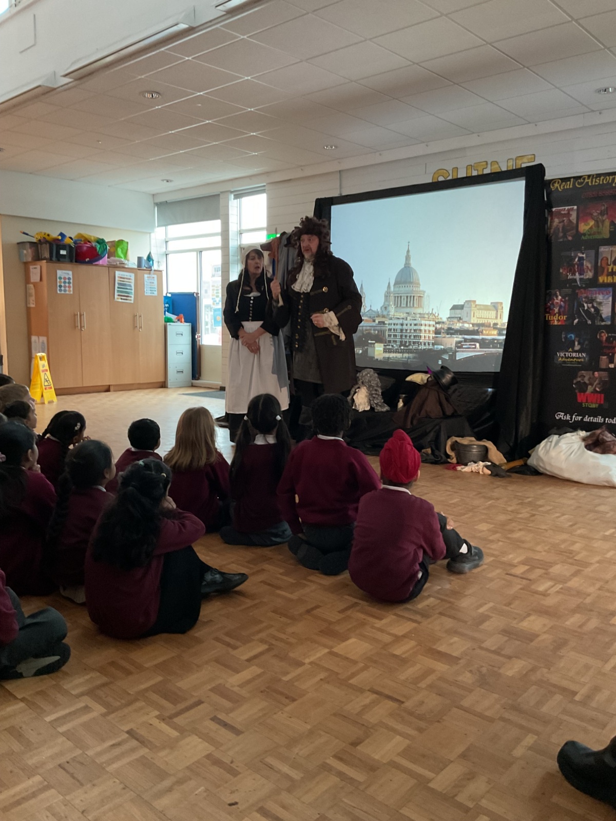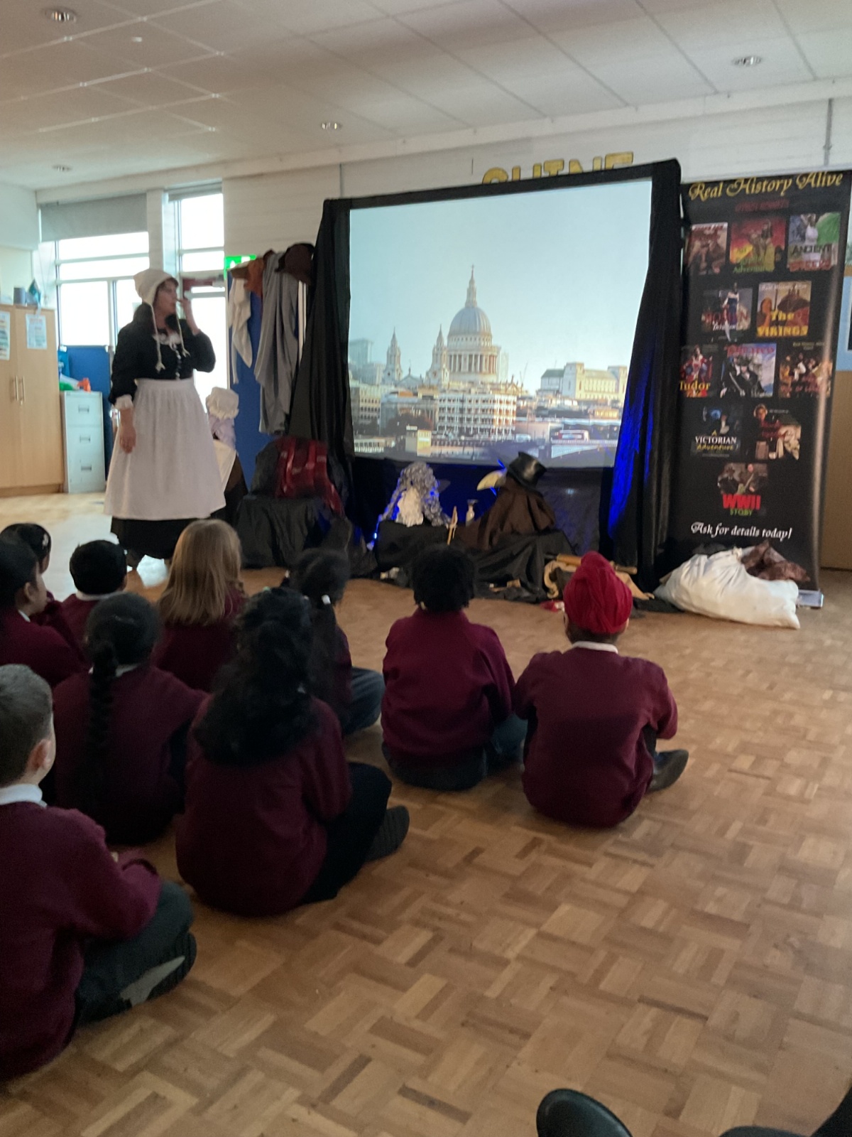 We were visited by Daisy from 1666 and Samuel Pepys who told us all about the Great Fire of London