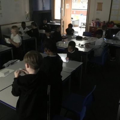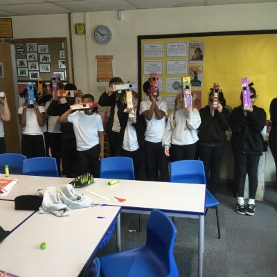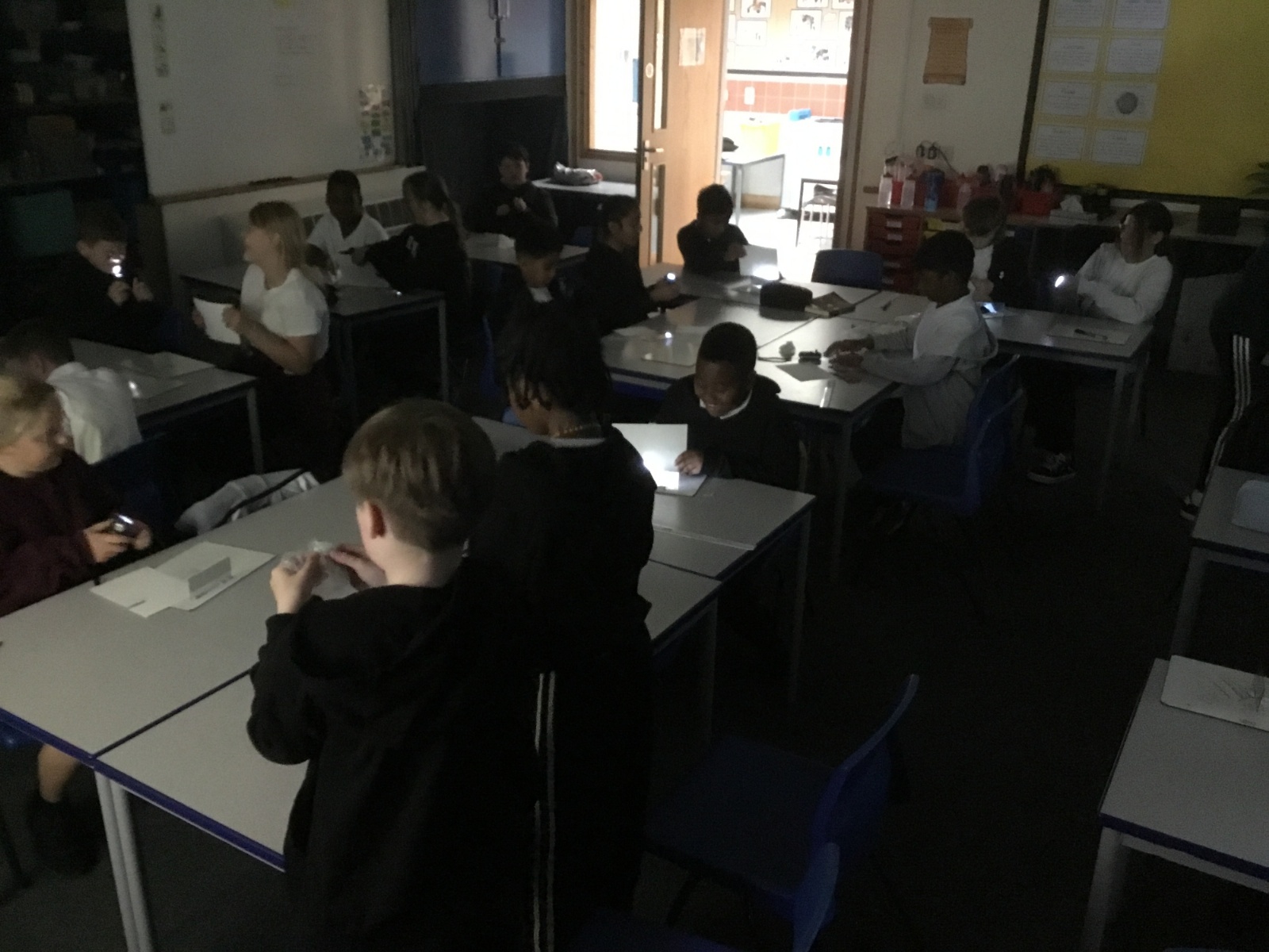 Bottom Left: How light travels - from the light source, onto the object and then to our eyes.