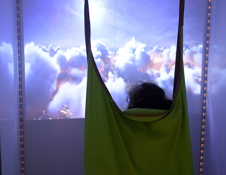 It provides a customisable space with adjustable lighting, sound, and visuals, allowing users, especially those with sensory sensitivities, to find comfort and focus.